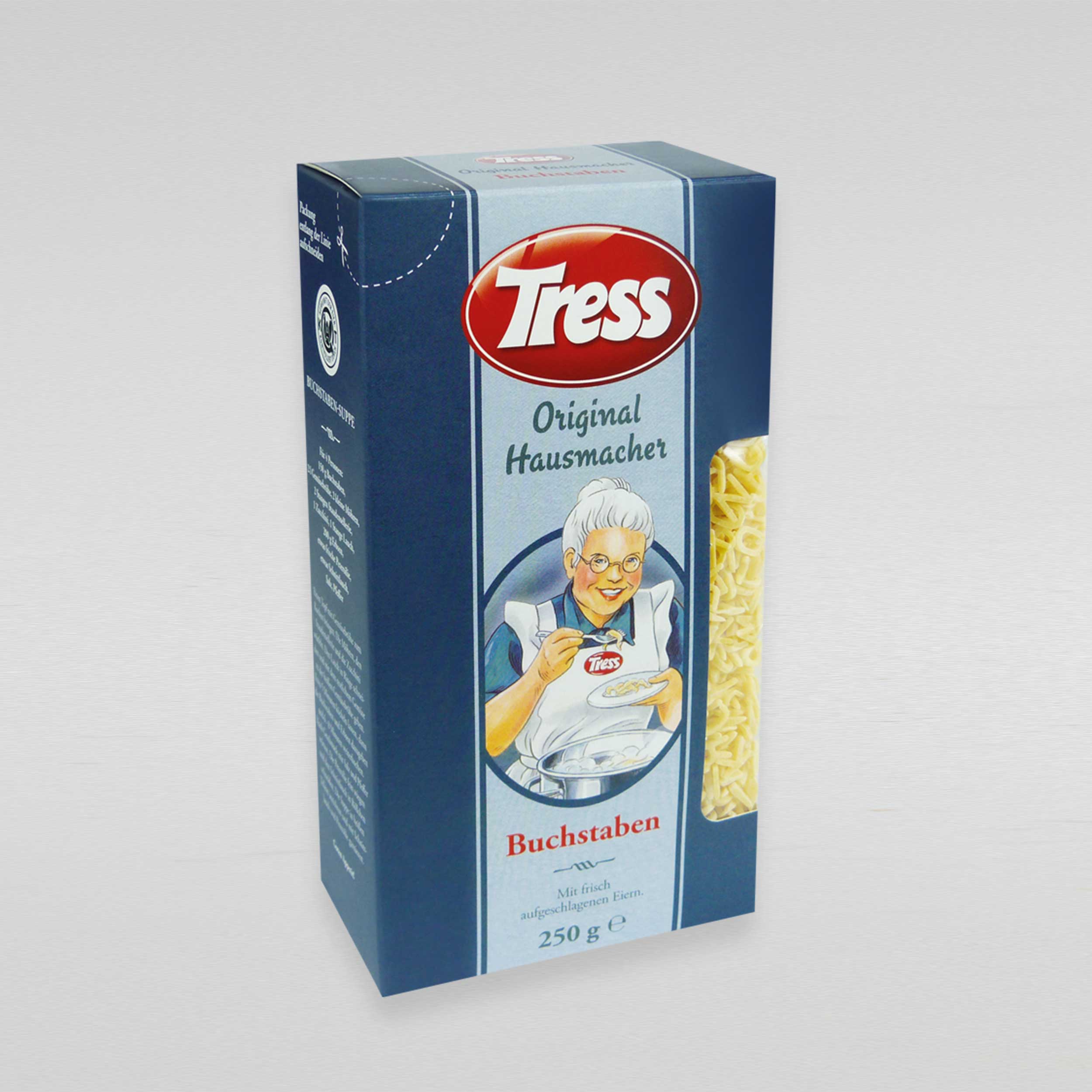 Die Originals Hausmacher-Nudeln von Tress werden in traditioneller Handwerkskunst auf der Schwäbischen Alb hergestellt – aus hochwertigem Hartweizengrieß und 20 % Frischei aus artgerechter Haltung. Alle Eier stammen aus zertifizierter KAT-Tierhaltung, werden täglich frisch im Werk aufgeschlagen und direkt weiterverarbeitet. Die große Vielfalt unserer Original Hausmacher Eiernudeln ermöglicht das Pressverfahren: Der Teig wird durch spezielle Matrizen gedrückt, wodurch die Nudeln ihre individuelle Form und die glänzende, goldgelbe Farbe erhalten. Die Spätzle – traditionell ins kochende Wasserbad getropft oder geschabt – runden das Sortiment ab und garantieren Genuss für alle.