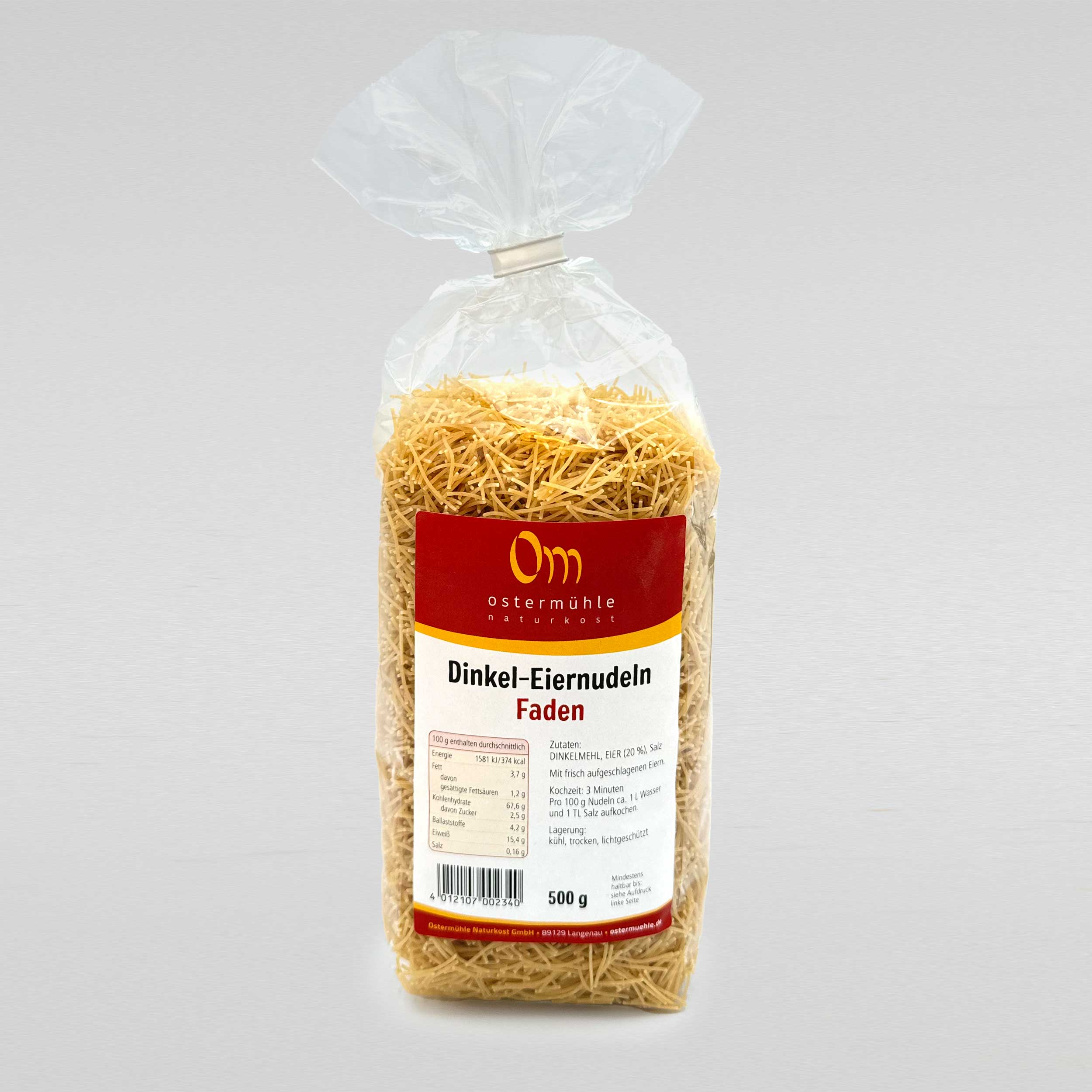 Fadenudeln – mit Ei und 100 % Dinkel aus Deutschland.