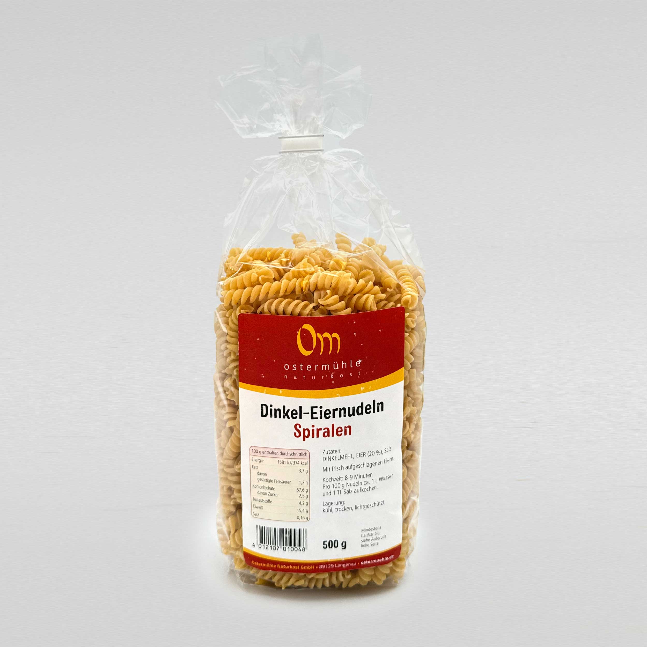 In der Ostermühle haben Dinkelnudeln seit über 30 Jahren Tradition. Die Spiralen werden mit Ei und regionalem Dinkel besonders schonend hergestellt – für besten Geschmack und ursprüngliche Qualität.