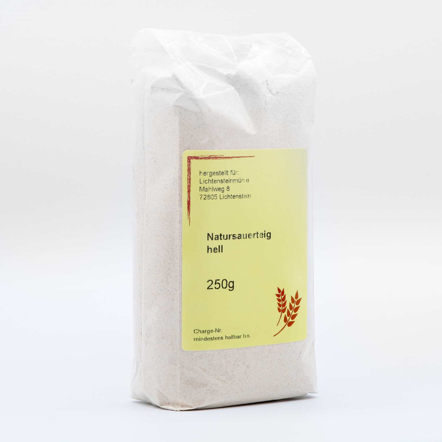 Heller Natursauerteig aus Milchsäurebakterien und Hefepilzen – ideal für Brote und Fladen. Verbessert Geschmack, Verdaulichkeit und Haltbarkeit. Anwendung: Bis zu 10 % des Roggenmehlanteils.